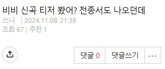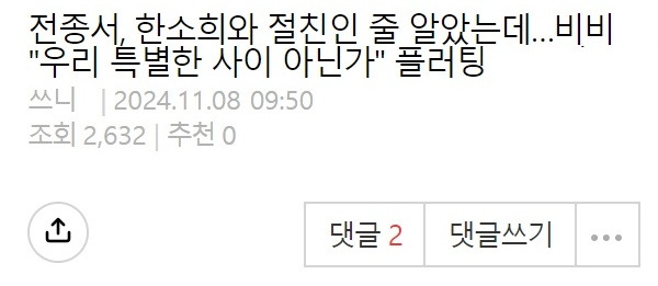 전종서의 새로운 친구…ㄷㄷ 11월 9, 2024 작성자: KIM 댓글 남기기 응답 취소댓글이름 이메일 웹사이트 다음 번 댓글 작성을 위해 이 브라우저에 이름, 이메일, 그리고 웹사이트를 저장합니다. Δ