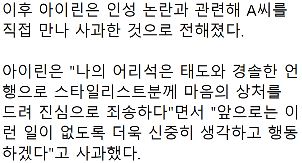 “사람이 달라졌는데..?” 논란이후로 달라진 아이린 근황 ㄷㄷ