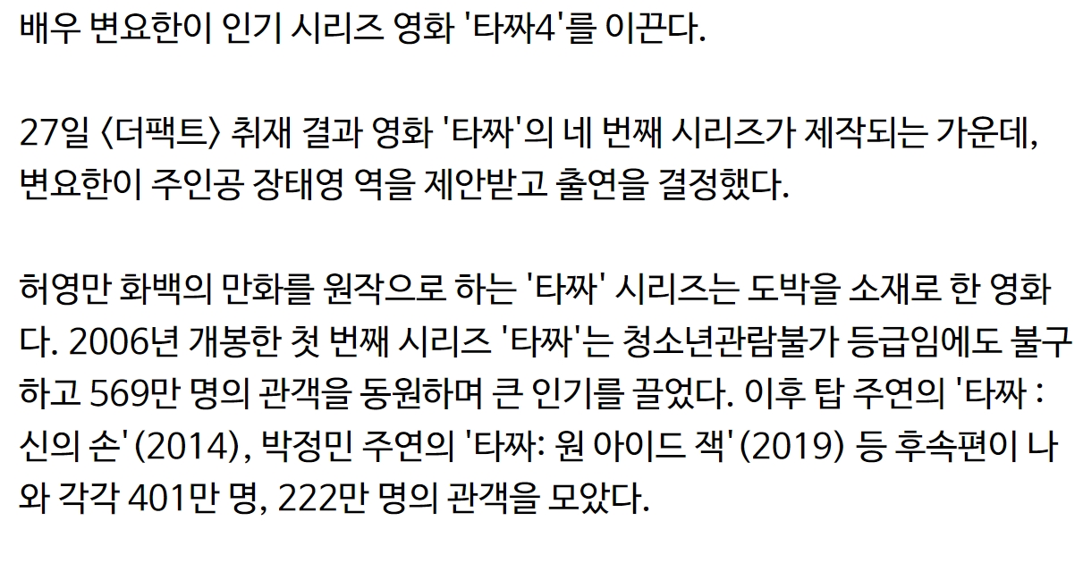 실시간 난리난 ‘타짜4’ 주인공 정체 ㄷㄷ 11월 27, 2024 작성자: KIM 댓글 남기기 응답 취소댓글이름 이메일 웹사이트 다음 번 댓글 작성을 위해 이 브라우저에 이름, 이메일, 그리고 웹사이트를 저장합니다. Δ