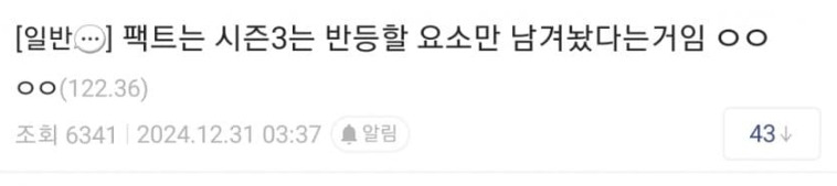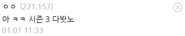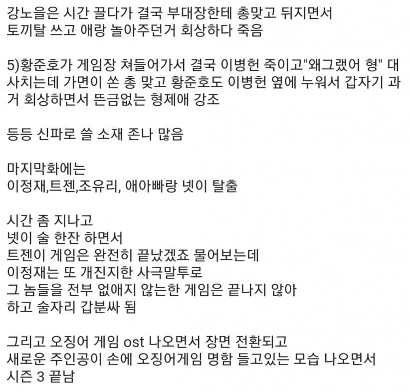 결말 유출된 오겜3 각본 ㄷㄷ 1월 2, 2025 작성자: KIM 댓글 남기기 응답 취소댓글이름 이메일 웹사이트 다음 번 댓글 작성을 위해 이 브라우저에 이름, 이메일, 그리고 웹사이트를 저장합니다. Δ