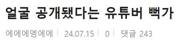 얼굴 공개 됐다는 유튜버 뻑가 ‘근황’