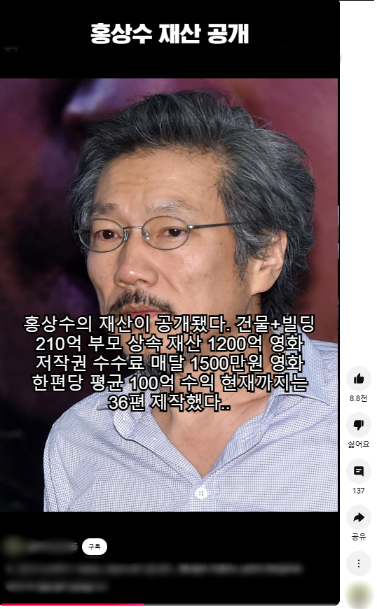 22살 연하 김민희까지 홀려버린 홍상수의 미친 재산 수준 ㄷㄷ 1월 19, 2025 작성자: KIM 댓글 남기기 응답 취소댓글이름 이메일 웹사이트 다음 번 댓글 작성을 위해 이 브라우저에 이름, 이메일, 그리고 웹사이트를 저장합니다. Δ