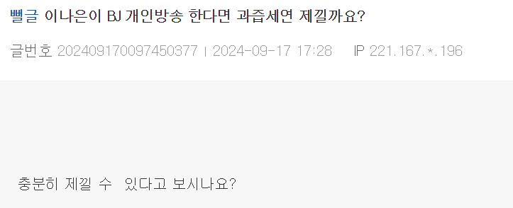 “별풍만 10억치?!” 결국 여캠데뷔 했다는 소문 돌고 있는 이나은 1월 20, 2025 작성자: KIM 댓글 남기기 응답 취소댓글이름 이메일 웹사이트 다음 번 댓글 작성을 위해 이 브라우저에 이름, 이메일, 그리고 웹사이트를 저장합니다. Δ