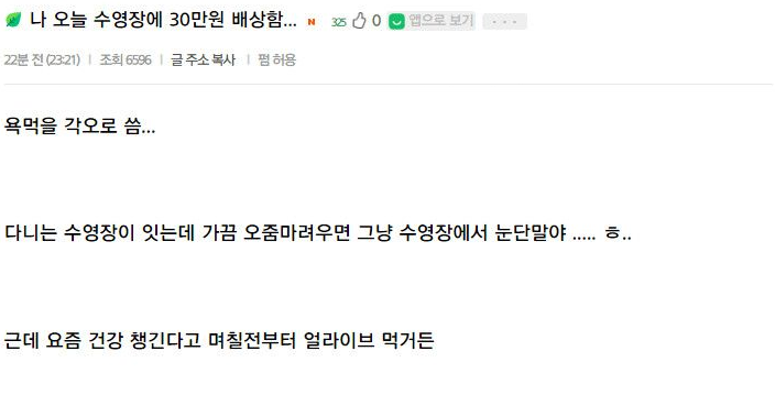 수영장에서 30이나 배상한 이유 ㄷㄷ