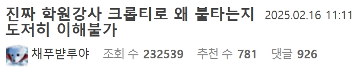 너무 예뻐서 논란인 학원강사 외모 근황 ㄷㄷ 2월 16, 2025 작성자: KIM 댓글 남기기 응답 취소댓글이름 이메일 웹사이트 다음 번 댓글 작성을 위해 이 브라우저에 이름, 이메일, 그리고 웹사이트를 저장합니다. Δ