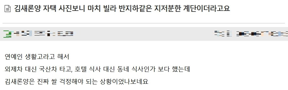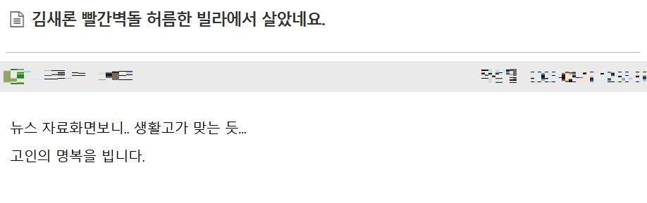 22억 집 팔고 김새론이 생전 살았던 반지하 빌라.. 2월 18, 2025 작성자: KIM 댓글 남기기 응답 취소댓글이름 이메일 웹사이트 다음 번 댓글 작성을 위해 이 브라우저에 이름, 이메일, 그리고 웹사이트를 저장합니다. Δ
