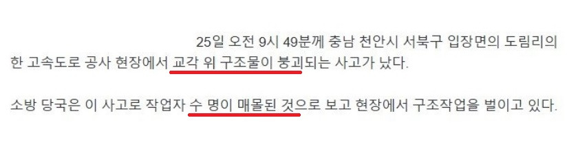 충남 천안 고속도로 공사장 붕괴 .. 작업자들 매몰