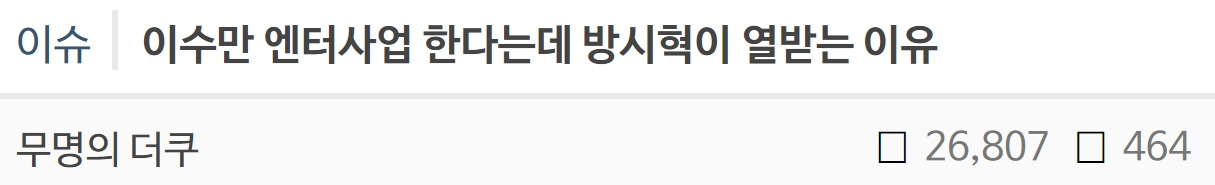 이수만이랑 방시혁 싸움 날 것 같다는 이유 8월 11, 2025 작성자: KIM 댓글 남기기 응답 취소댓글이름 이메일 웹사이트 다음 번 댓글 작성을 위해 이 브라우저에 이름, 이메일, 그리고 웹사이트를 저장합니다. Δ